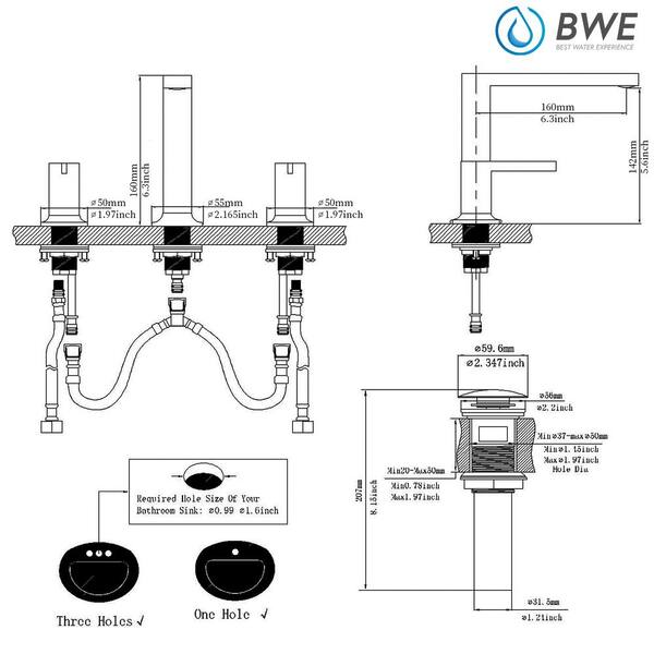Bwe 8 In Widespread Double Handle Bathroom Faucet With Pop Up Drain Assembly In Spot Resist Matte Black A 916450 B The Home Depot